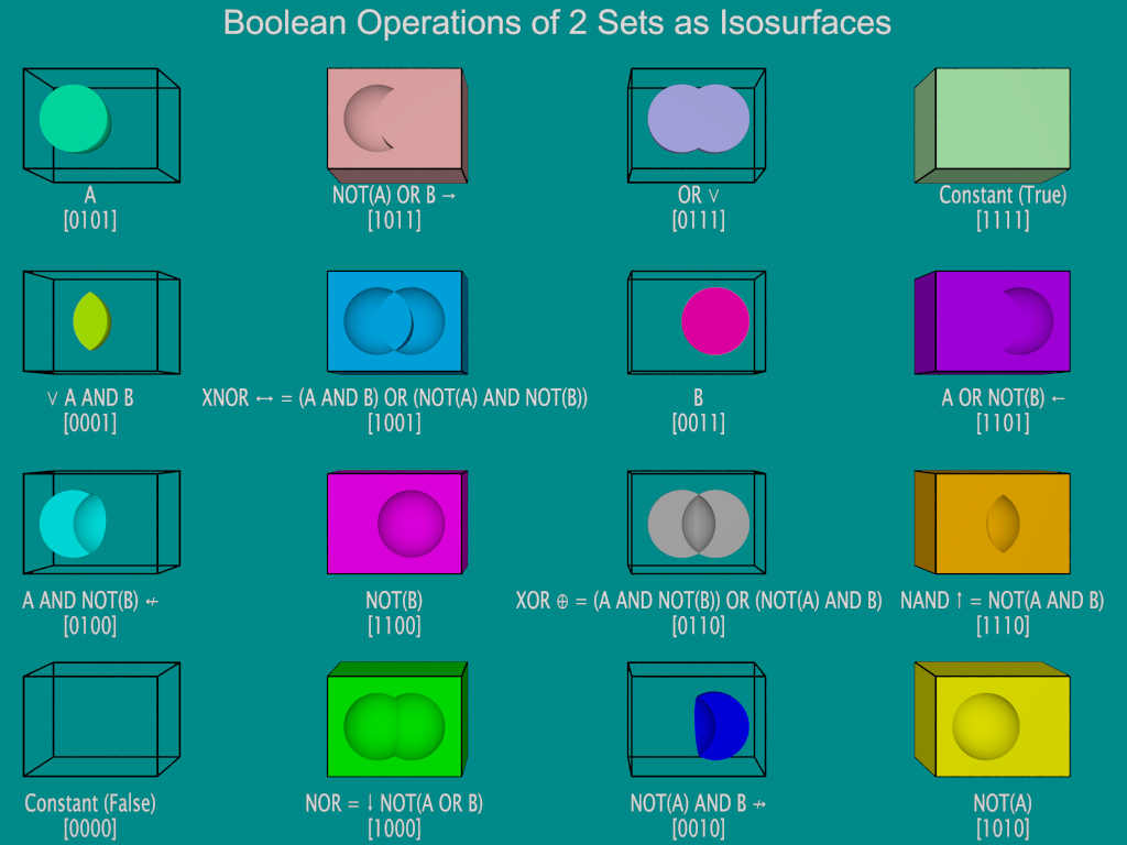 After looking over Boolean functions on Wikipedia, Shadertoy, and a few other