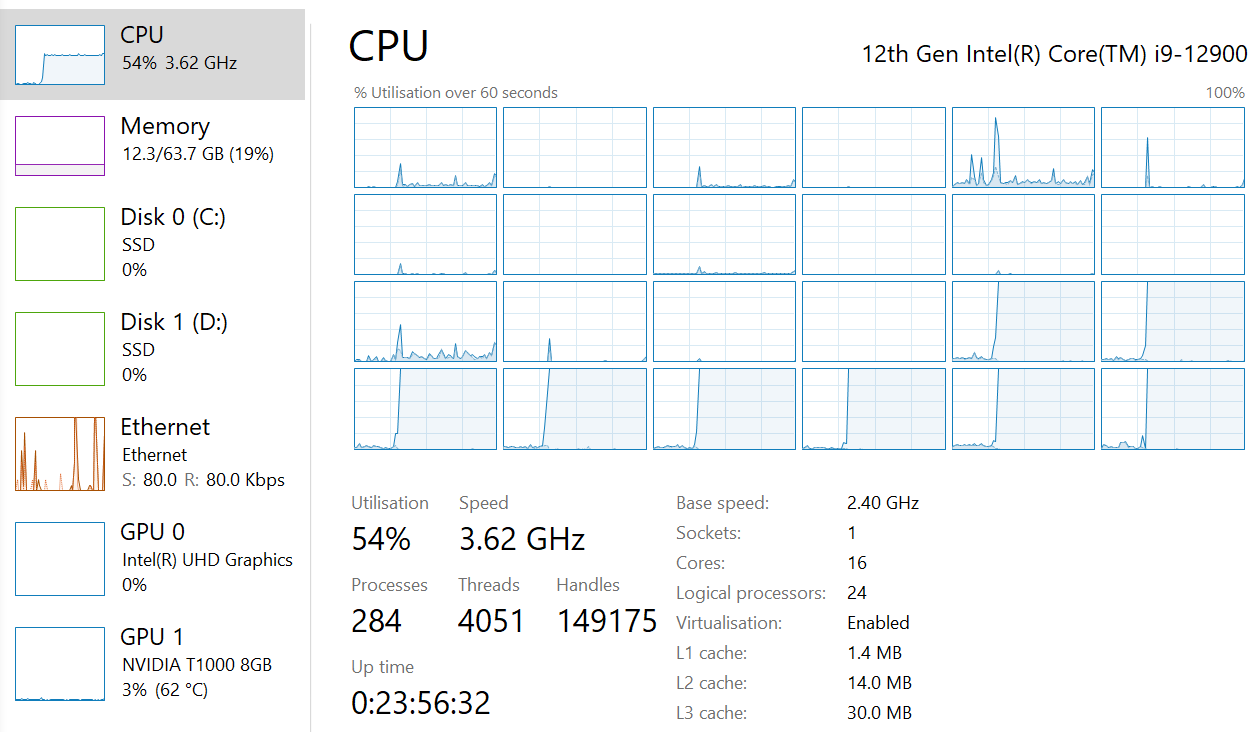 So I just got a new CPU (i9-12900) and it seems POV only uses 8 out of the 24