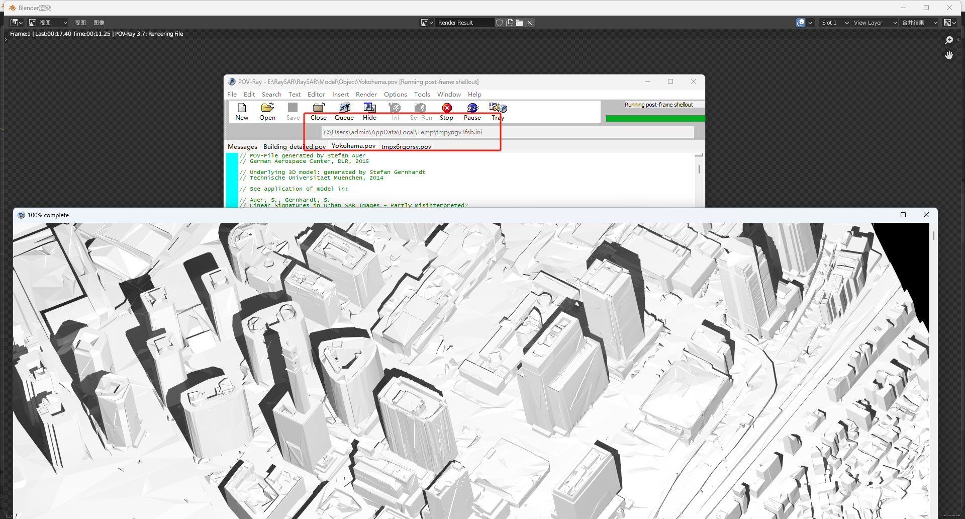 POV-Ray for rendering, POV-Ray starts and I can see the corresponding path, but