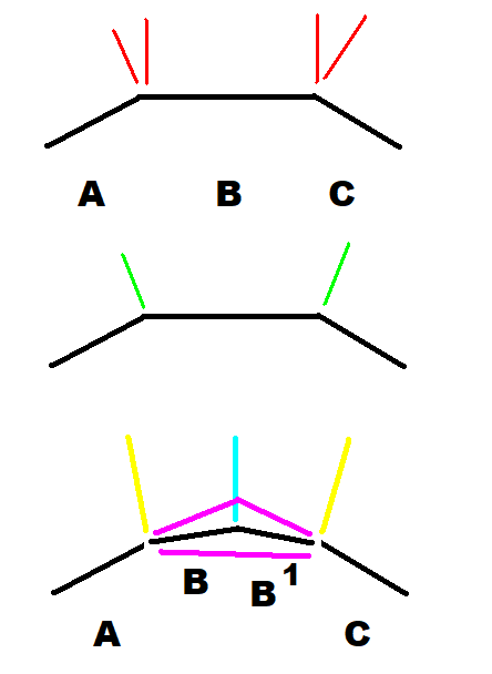 Below, I've broken B into two parts, B and B1. Finding the split point as the