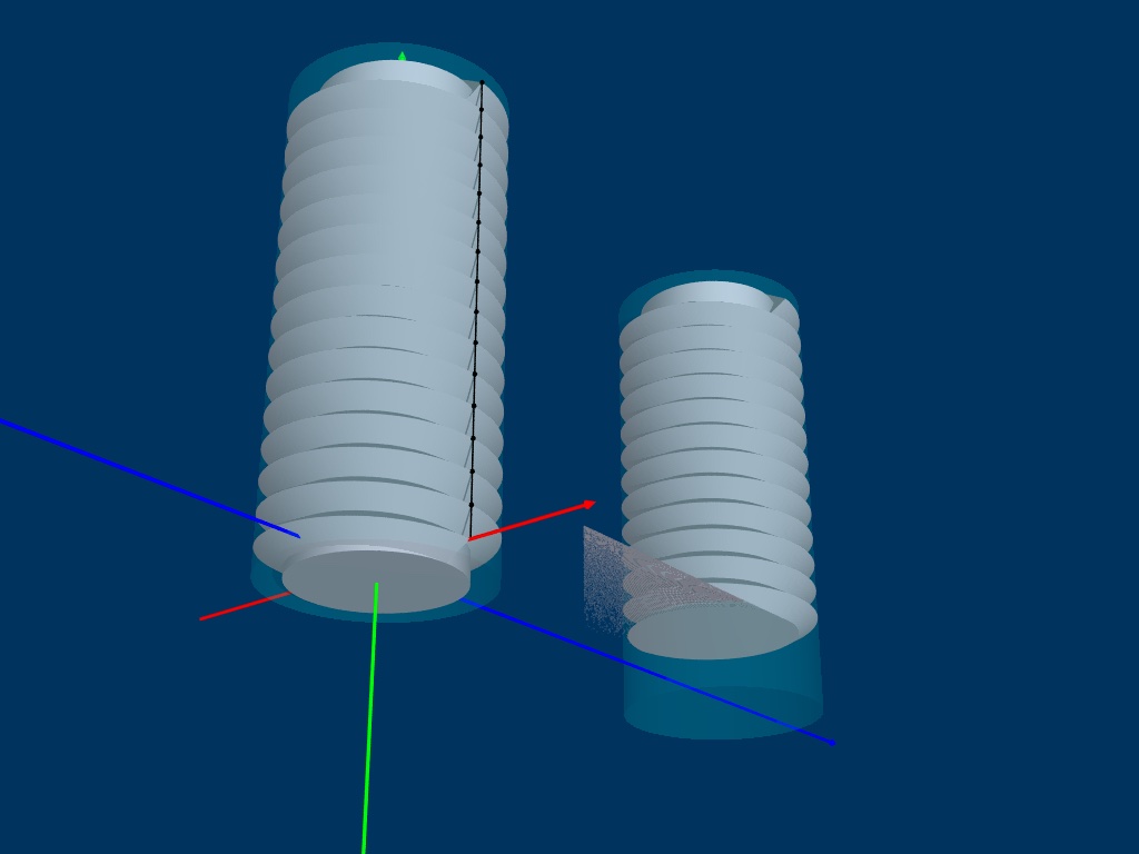 > On the right, the same object “cut” at the base by a plane