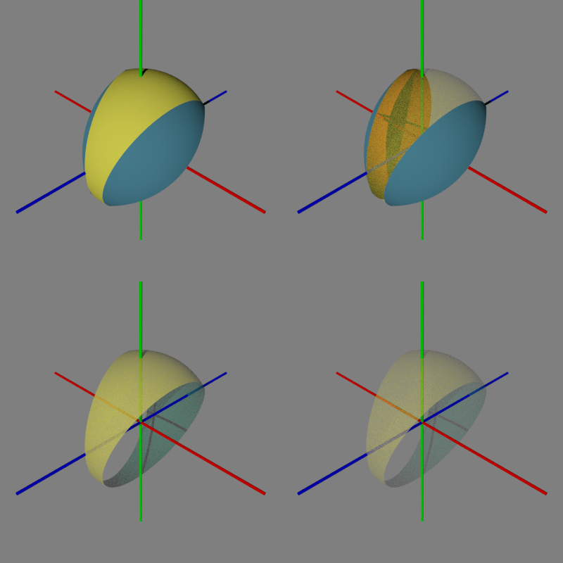 bounded_by{} and clipped_by{} spheres. One showing results with