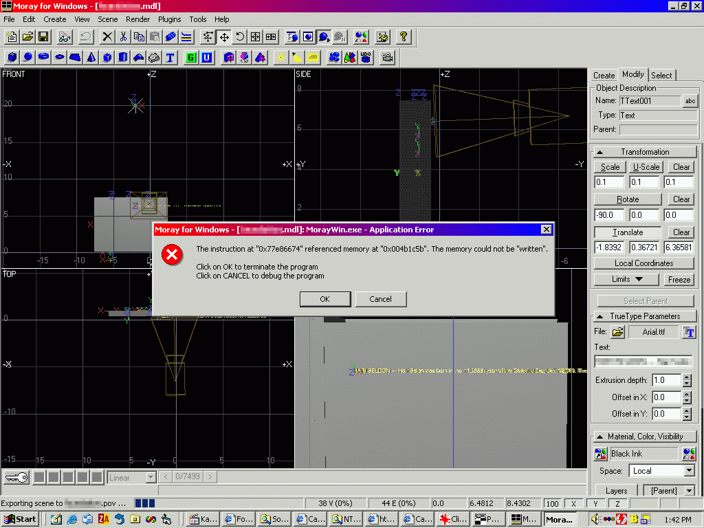 > > I've attached screenshot of the crash (80k PNG)... Looks like Moray