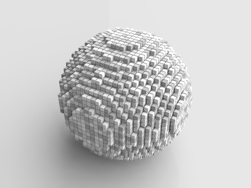 and produces the image with the sphere which seems to be "pixelated" but