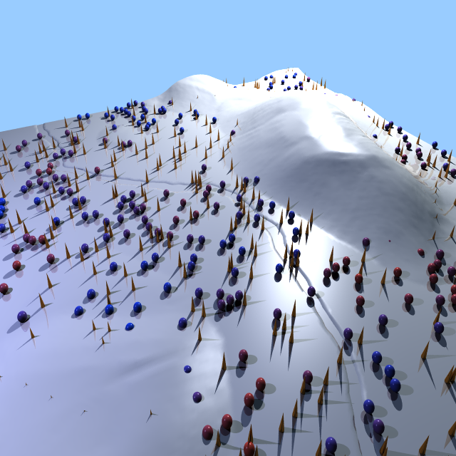 spheres and cones are still at y = 0 instead of conforming to the hills.