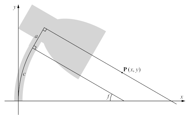 > (x - c/f) * sin(f) + y * cos(f) = a