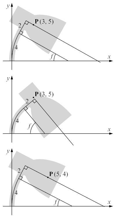 (x - c/f) * sin(f) + y * cos(f) = a