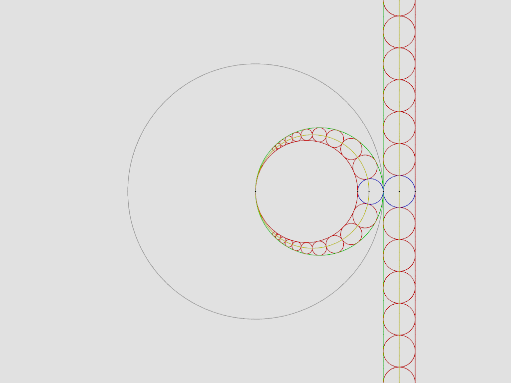 Then, since all of the subsequent circles are tangent to both of the circles and