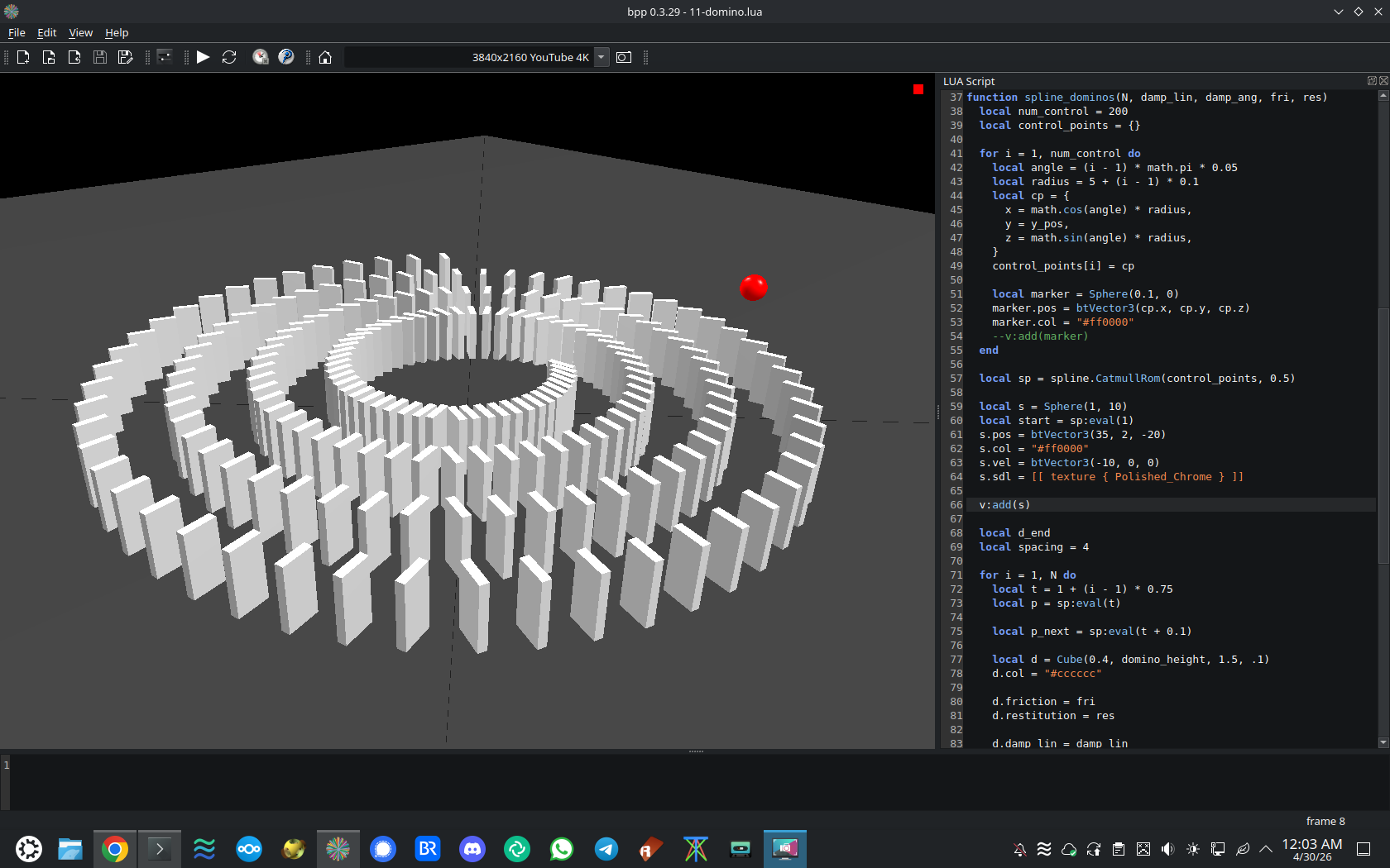 > "Leroy" <whe### [at] gmailcom> wrote:> > Video link> > https://youtu.be/gJtzmqIOLw8> >> >> > Have Fun :)>> I too like to simulate and render dominoes inside the bullet physics playground,> see:>> https://youtu.be/B7EtmXFeUE0>> Happy POVing!