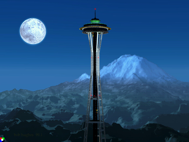 > Moon is a NASA image and Mount Ranier is a USGS DEM (actually 3