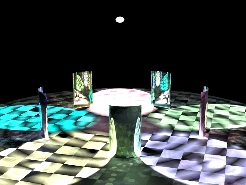 The same scene, but without photons, and with a new lightsource.(<0,40,0> rgb