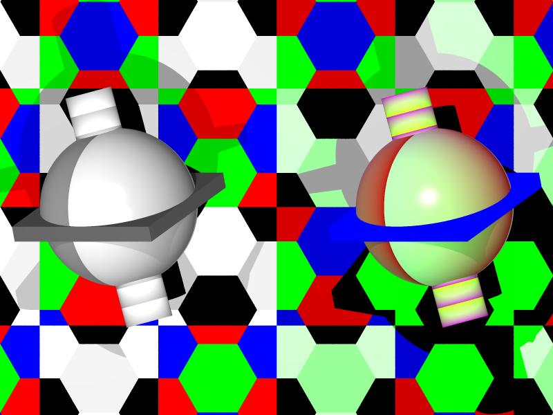 redo with both BW and RGB colours. a checker/hexagon background, to show it is