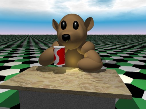 > First of all, that bear demands hair. Use the fur.inc to fuzz it up a notch.