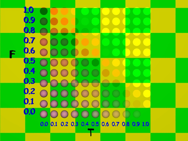 > > note where f=1.0 and t=0.0, the green checks are black since no green is