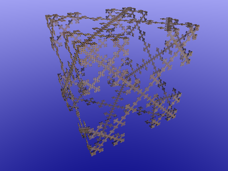 I suspect this is in reality 6 copies of a 2D-fractal forming the cube.