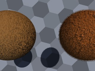 while the fur on the right uses fast-rendering noisy media: