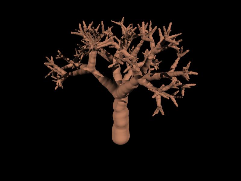 > needs to be more randomness in the lengths and diameters of each branch, and