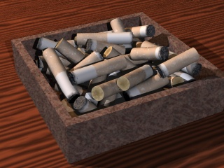 Unrealistic--the cigarette butts are neatly stacked in an ashtray and not