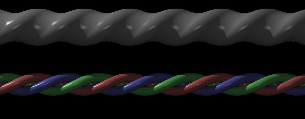 > Top gray one is of blobs. Bottom wires are of spheres. Is there a wire