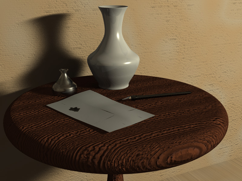 attention was on the vase and ink well (if it is a ink well).
