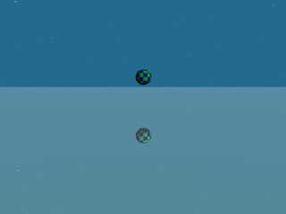 > > Checkered sphere on a reflective plane. Right?