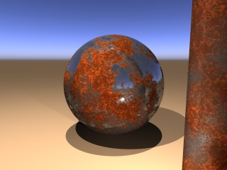 > > > The sphere is meant to be rusted steel; the thing on the right is a