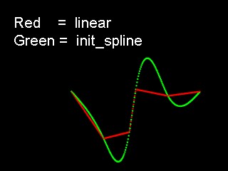 > an #init_spline and a linear spline with the same data points.