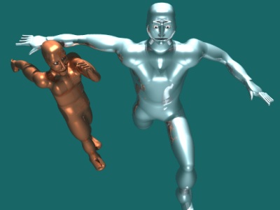 On the silver guy his shoulders don't look right - they seem to be pushed