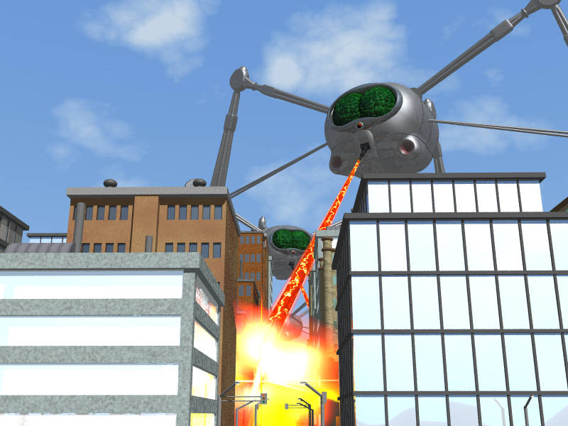May I suggest placing the 'legs' of one of the tripods on the buildings...