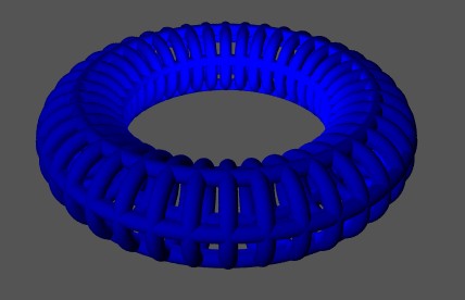 object{ WireTorus( 100, 25, 5, 5, 40 ) texture{ pigment{ Blue }}}