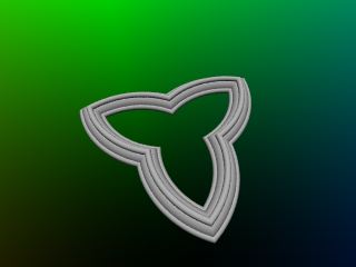 A trefoil inscribed in an equilateral triangle.