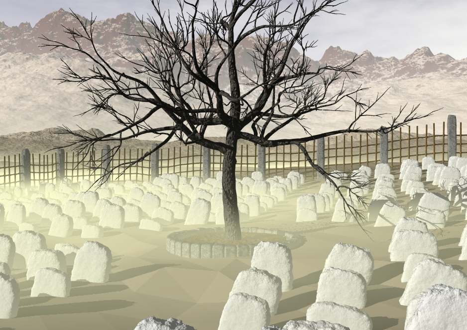 > >An old graveyard in dry, dead land.