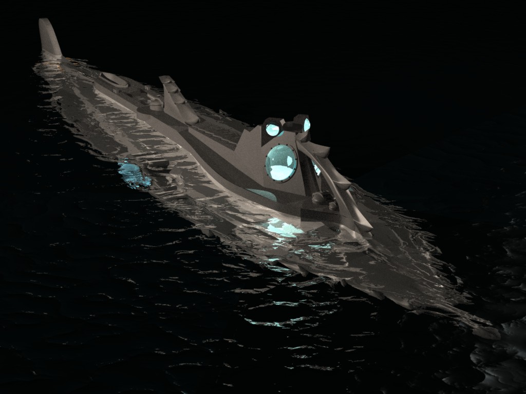 (maybe moonshine) so the water gets some structure behind the submarine.
