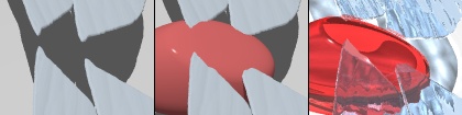 left 2 sections are opaque, no photons, with camera <0,4,-4> and the