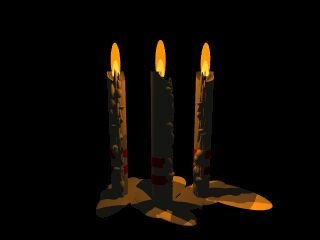 > Robert J Becraft wrote:>> > How about a set of three candles... done with NO media.>> IMHO using at least some media would give a better result.>> --> David Fontaine <dav### [at] faricynet> ICQ 55354965> My raytracing gallery: http://davidf.faricy.net/>>