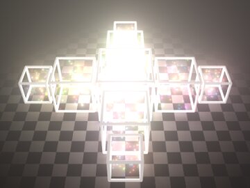 > Experimenting with glows in MegaPOV. I used Chris Huff's 'glows attatched to