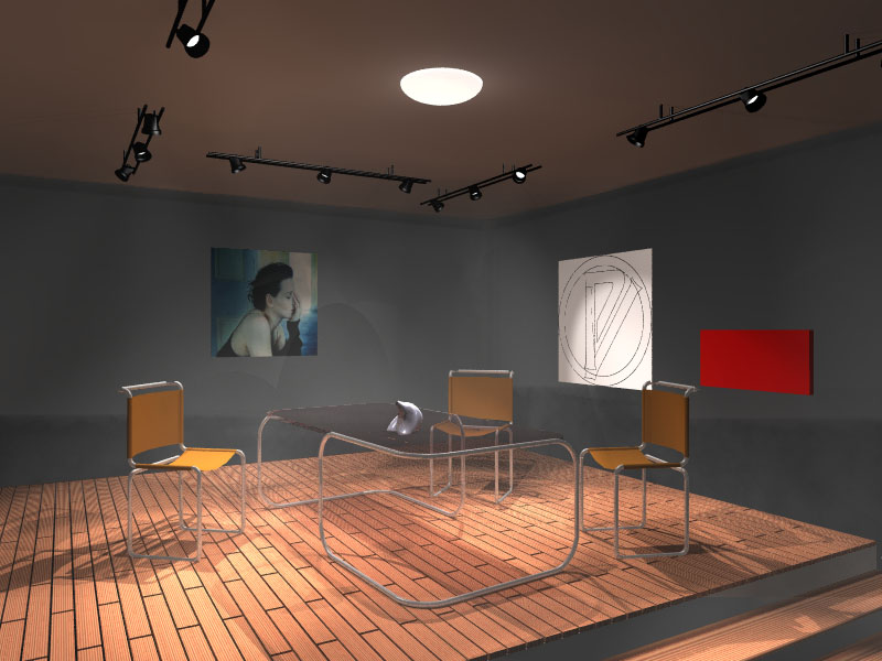 > A new version of an already old picture> Used Megapov radiosity and media.>> The picture still looks empty>> Enjoy, Juliette Binoche at the back>> Fabien>> ------------------------------------------------------------------------> [Image]