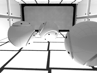 on the spheres and the wall but... I think it is better with radiosity