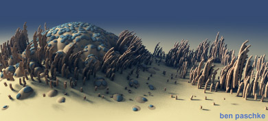the sand), radiosity for that georgeous finish, and a nice arealight.