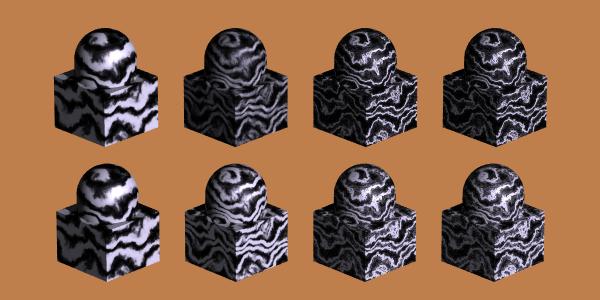 The second attached picture shows some samples for the 'grad' pattern, the