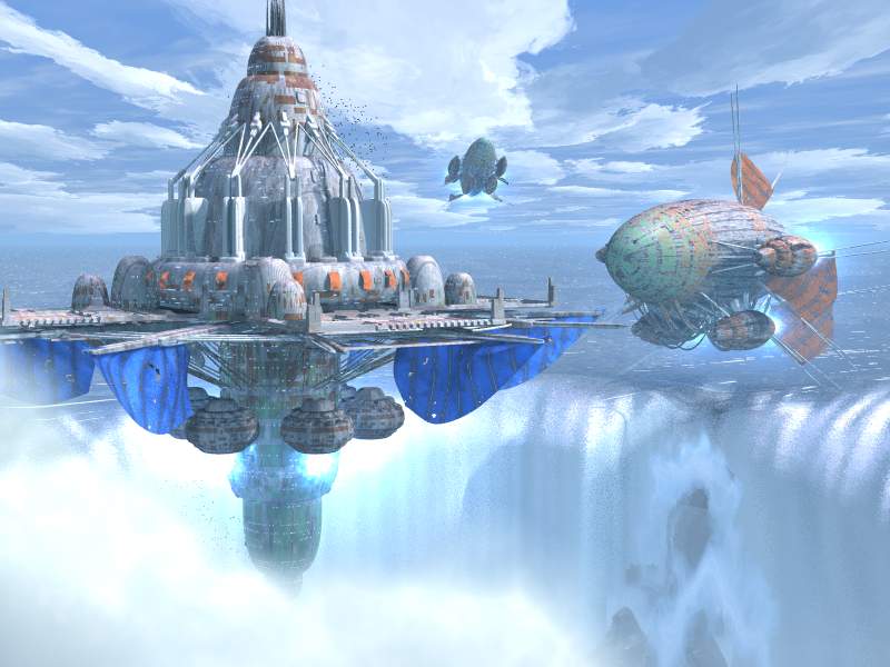 with the waterfall. You could have one or several already docked blimps on the