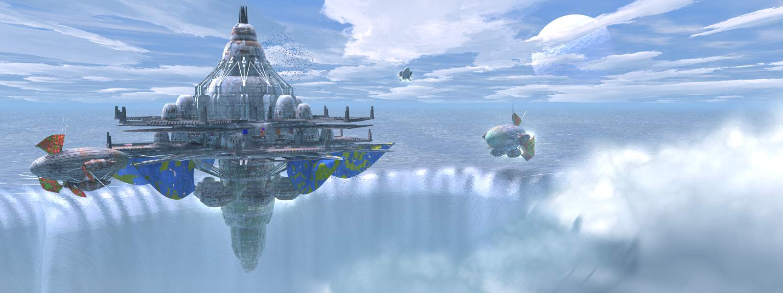 the blimp to the right is holding position directly above the