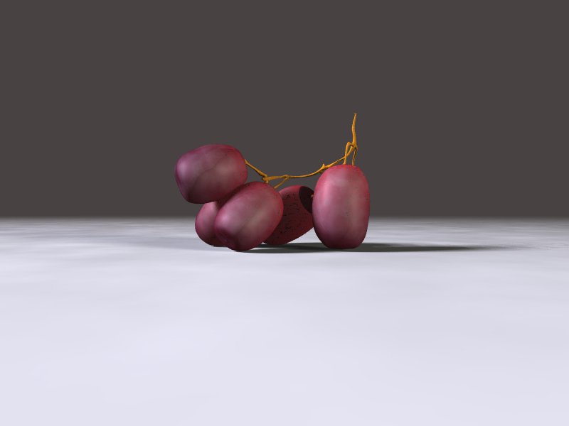 > This version adds emission to the media, I also tried extinction 0 but> emission gave a more all-over effect. Further blended the bluish bloom> on the surface of the grape. Comments?