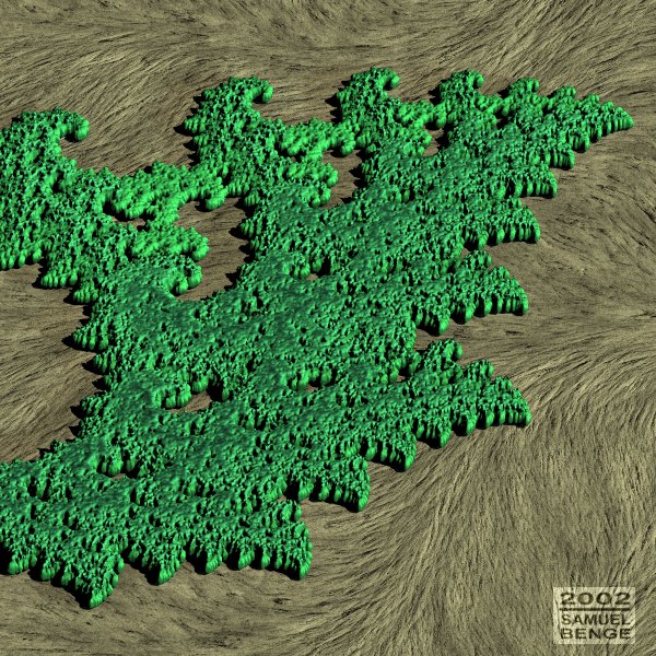 > Hello everyone. After seeing a program called XenoDream I decided to try> my hand at some strange fractal shapes again. The green 'organic' object> is comprised of two isosurfaces stacked on each other, both using an> image created in Gimp. The image was made using the ifs composer plugin.>> Render time was about 35 minutes with no radiosity. Questions, comments,> etc. are always welcome!>> --> Samuel Benge>> sbe### [at] caltelcom