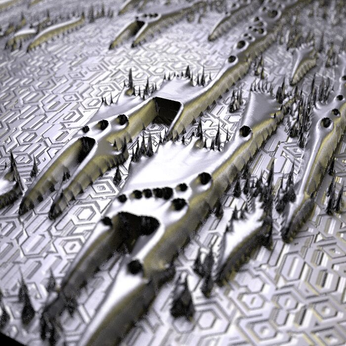 > The shapes portruding from the plane (not the crackle-based patterns on