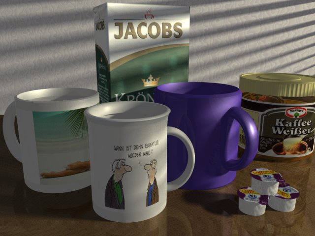 > reflection (if you're using MegaPOV) to give the cups that glossy glazed