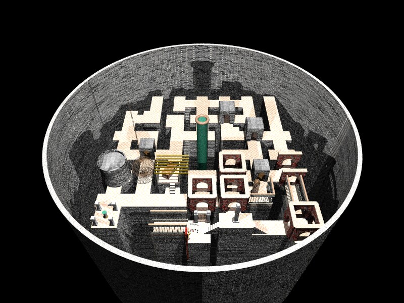 multiple levels to the maze. In the foreground, just to the right of center