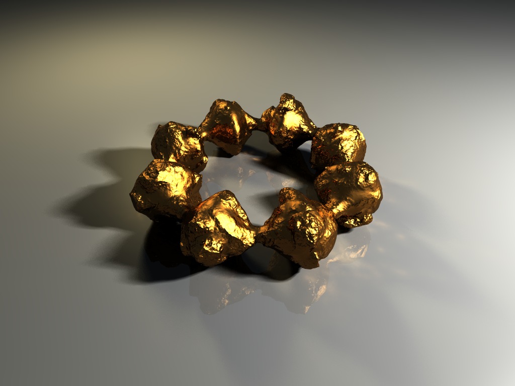 function { TORUS(x,y,z)-BUMP(1.5*x,1.5*y,1.5*z).red*0.19}