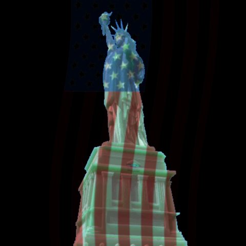 it in front of the previously rendered image map of the Liberty picture.
