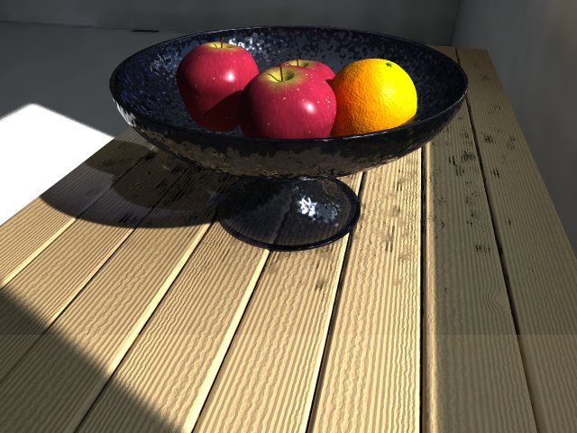 > table planks and at the lowest edge of the room), but render time was much